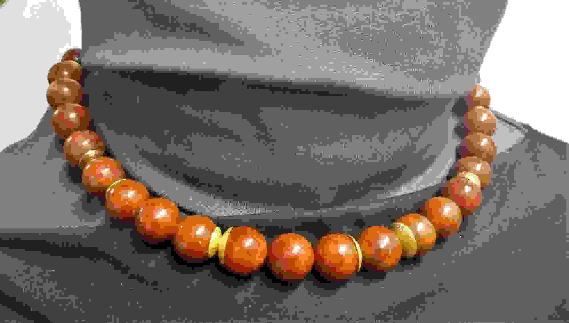 verkauft/Unikat, nicht mehr lieferbar – Schaumkoralle-Collier, mit vergoldeten Elementen (925erSilber), Juwelierdraht, Federring-Verschluss 925erSilber vergoldet.