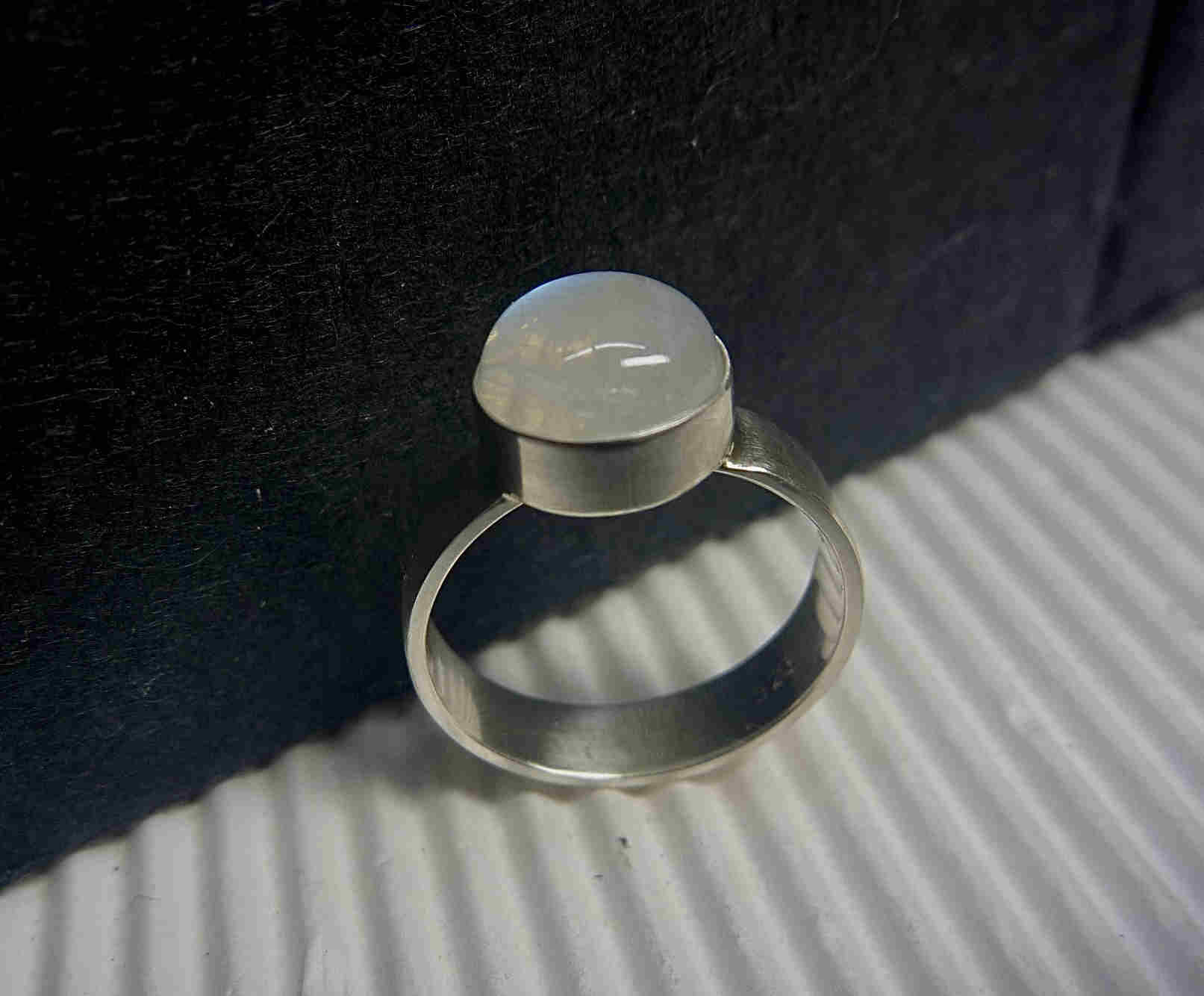 Silber-Ring mit Regenbogen-Mondstein, 925er Silber, aus eigener Werkstatt, handgemacht (hergestellt mit traditionellen Goldschmiedetechniken);